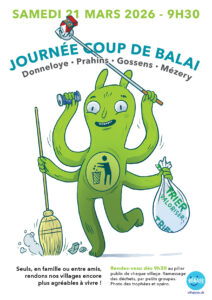 🗓️ Date : le samedi 21 mars 2026, 09:30 📍 Lieu : Rendez-vous au pilier public de chaque village (Donneloye, Prahins, Gossens et Mézery) 📢 Qu’est-ce que c’est ? Chaque printemps, notre commune se mobilise pour l’opération cantonale « Coup de Balai », dédiée au ramassage des déchets sauvages. Cette initiative vise à sensibiliser la […]