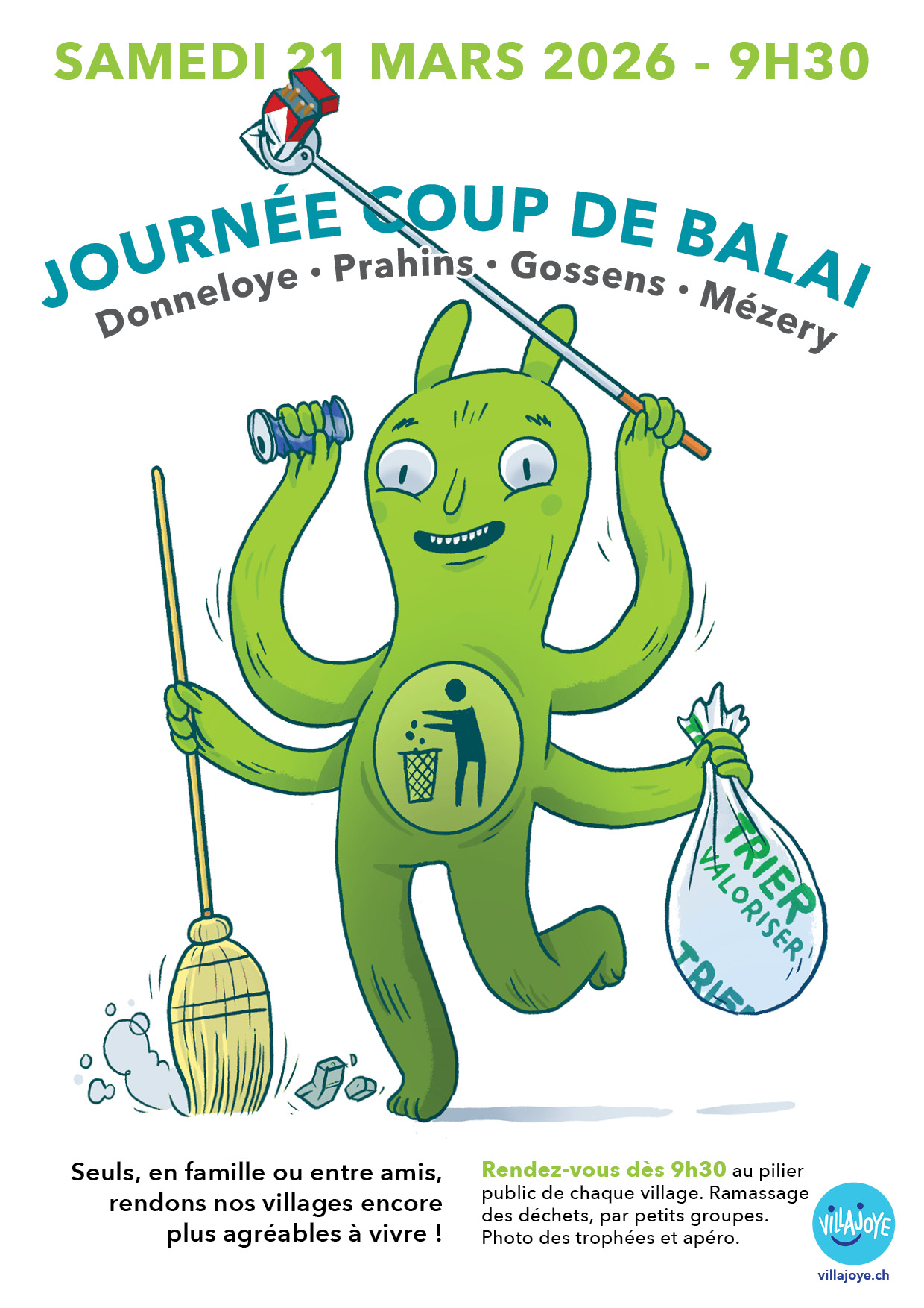 Rendez-vous : le samedi 21 mars, à 9:30, devant le pilier public de chacun des villages de la commune de Donneloye.